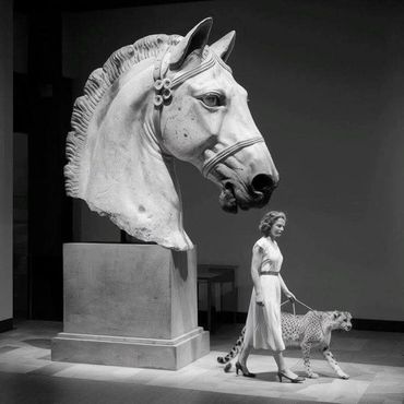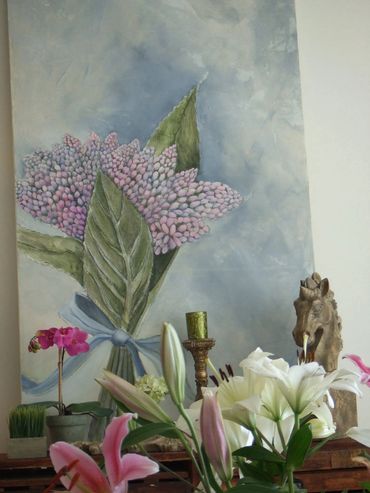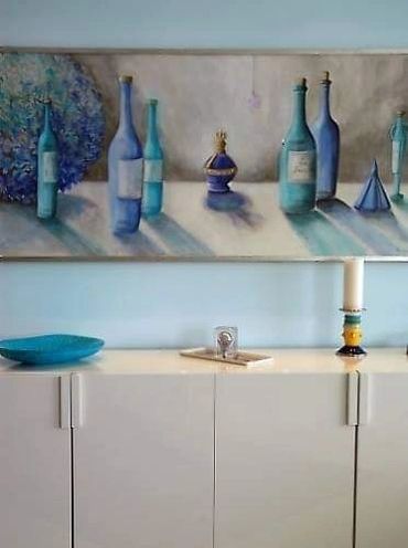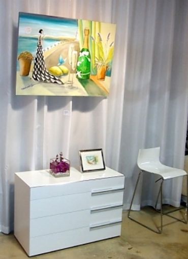 Her large oil paintings derive from a distinctive aesthetic world. She converts everyday objects and luxury items into relics against a background of American glamour and European romance. Imbued with elements of expressionism to denote emotive nuance and verve, the work embodies a sensitive approach to the depiction of the interior world in a balanced and harmonious manner.
